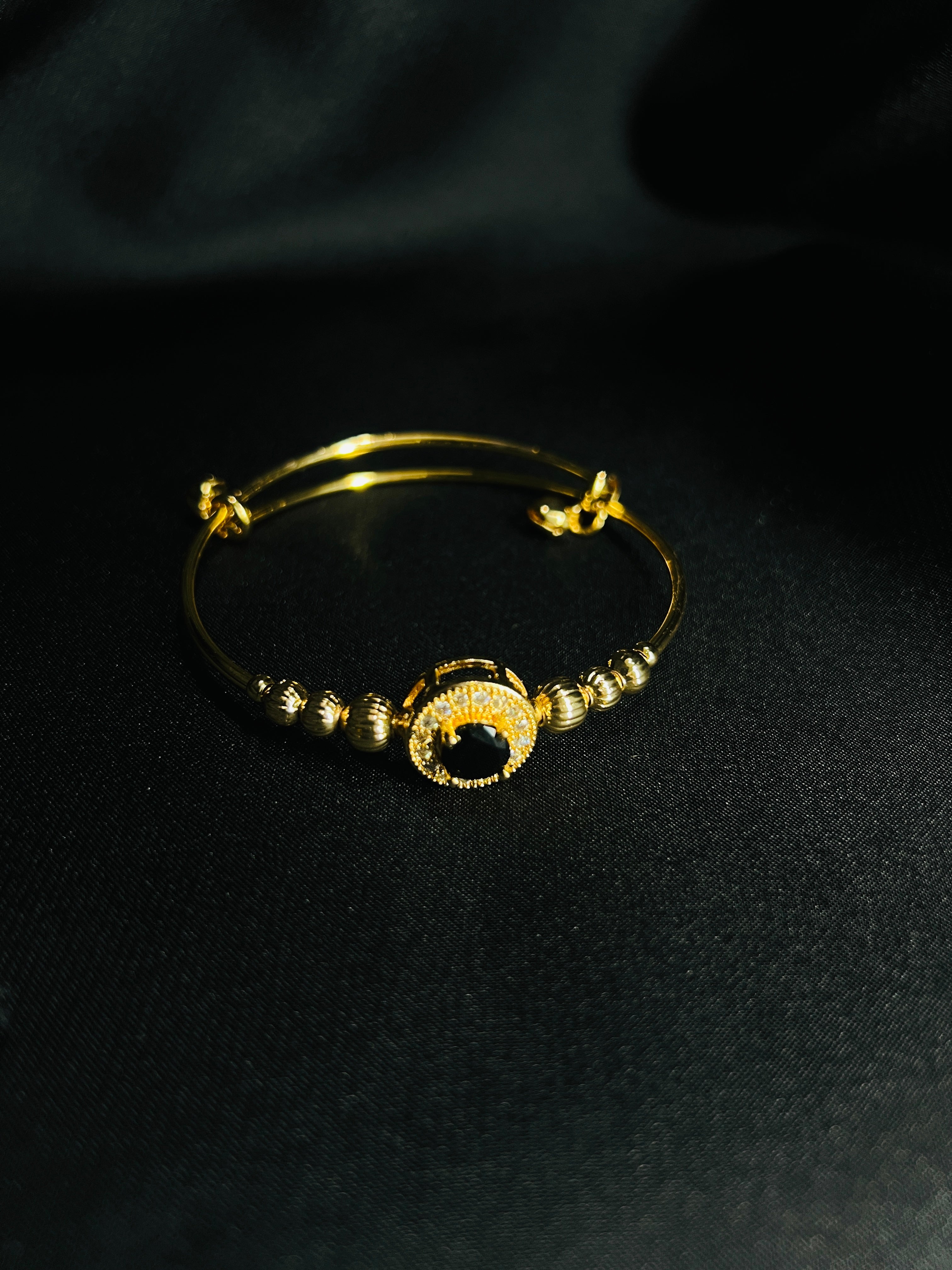 Elevate your wrist game with this stunning Women's Metal Embellished Bangle in a radiant gold hue. The intricate embellishments add a touch of sophistication, making it a timeless piece that effortlessly elevates any outfit. Stand out with this bold and elegant accessory from the Walvero Collection.